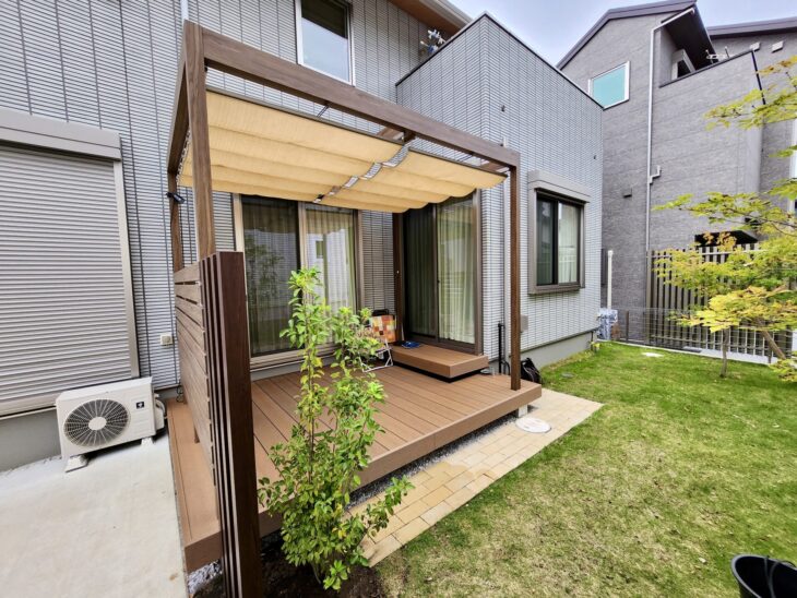 床材の連続性:リビングのフローリングの色や質感に合わせたデッキ材を選ぶことで、室内から庭までが一体感のある空間になります。